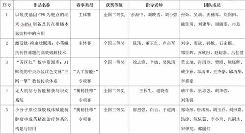 10月31日-11月3日,由共青团中央、中国科协、教育部、中国社会科学院、中国工程院、全国学联、江苏省政府共同主办的第十九届“挑战杯”全国大学生课外学术科技作品竞赛终审决赛在南京大学圆满落幕。我校荣获主体赛全国二等奖1项、三等奖1项;“人工智能+”专项赛全国一等奖1项,“揭榜挂帅”专项赛全国二等奖1项、三等奖1项,本届竞赛我校“科技发明制作”类作品首次进入国赛终审决赛。
