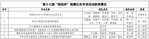 在本届大赛中,我校竞赛成绩取得了历史性突破,选送的16个竞赛项目全部获奖。其中,10个主赛道项目获一等奖1项,二等奖3项,三等奖6项;6个红色专项赛项目获特等奖1项,一等奖1项,二等奖4项。学校获评优秀组织奖,匡芳光获先进个人。