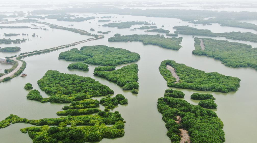 这是2023年4月10日拍摄的广东湛江红树林国家级自然保护区麻章金牛岛片区(无人机照片)。新华社记者 王瑞平 摄